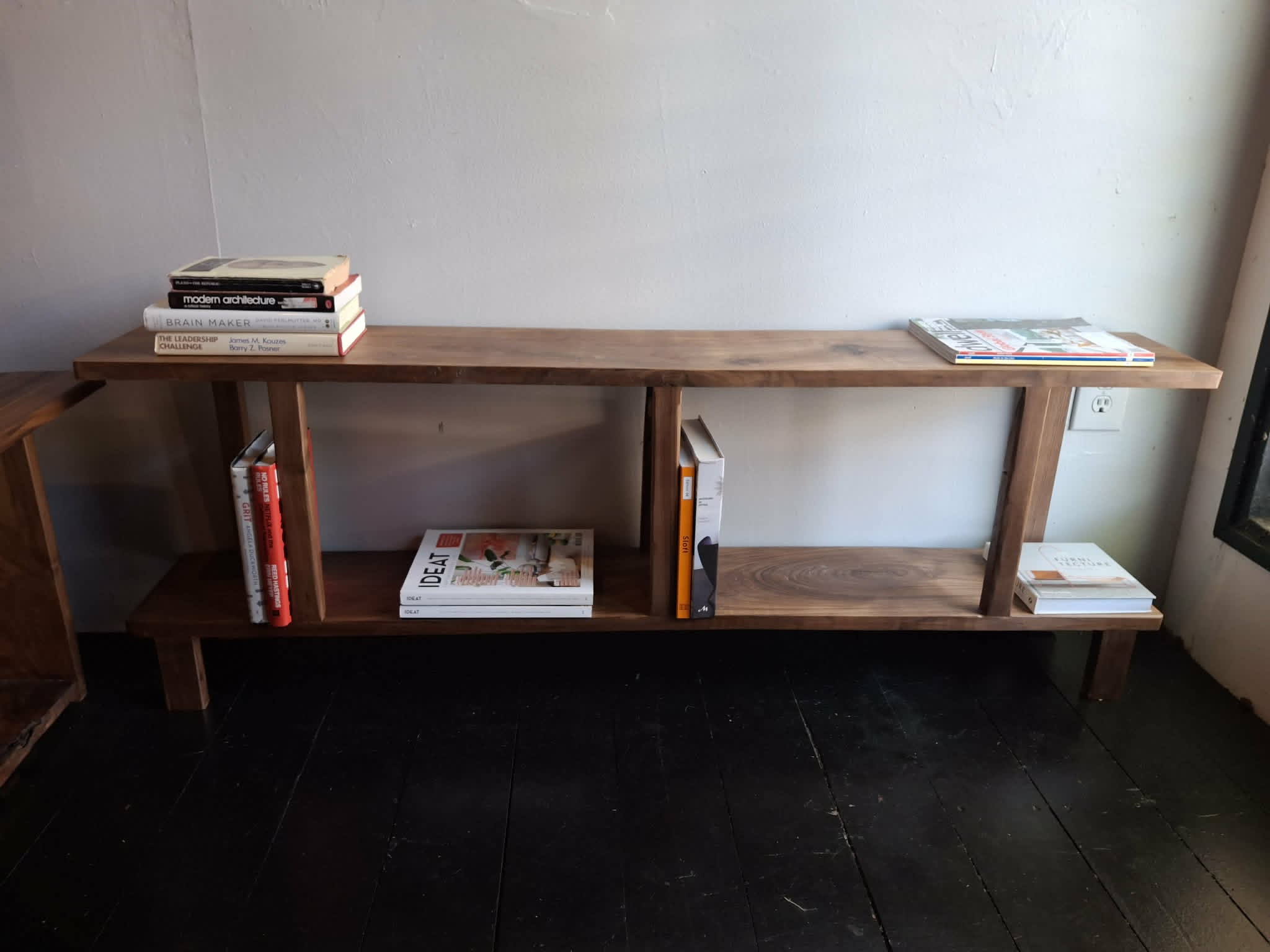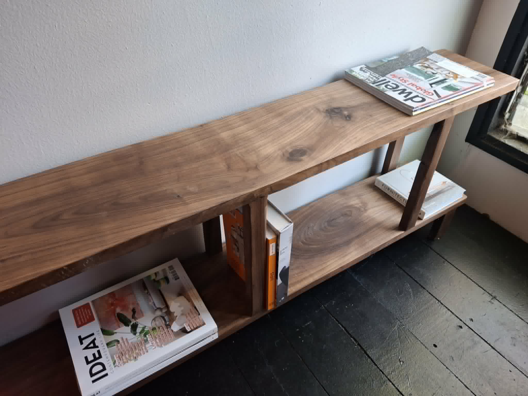 "LOVE my new solid wood walnut shelf. Honestly it was a great deal compared to many big box furniture stores and a fraction of the price. love that it was locally handmade and I was never asked for a deposit. i just paid in full when it was delivered."